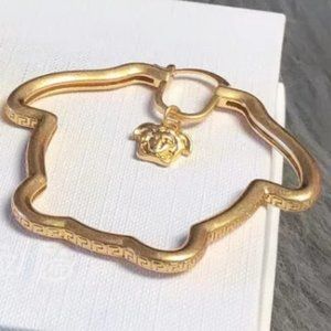 1 pair Lamborghini Red Concave Hot Glazes Hears 3D Luxury Fashion V Brand Red Gold Versace Head LUX Earrings V Fashion Dynamic Hoops in a Convex Shape of V Head Women's Jewelry