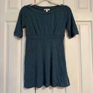 Lux Womens 90s Y2K Boho Babydoll Knit Empire Waist Top Dark Teal Medium