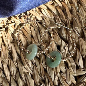 Lux and colorful bright green Aventurine charms gold statement hoops earrings