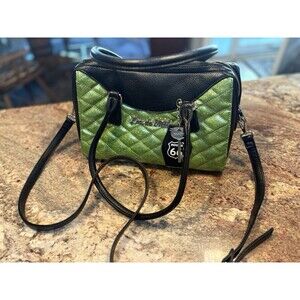 Color/Material: Vibrant green glitter quilted patent with black faux leather trim