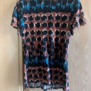 Lux brand top. Short sleeve. Black, brown, white and blue. V neck.