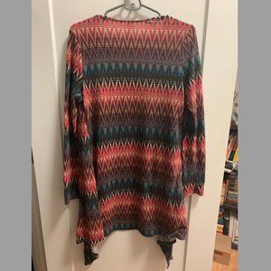 Long sweater from Luxe Apothetique with multi-color pattern. Approx. 32 inches.