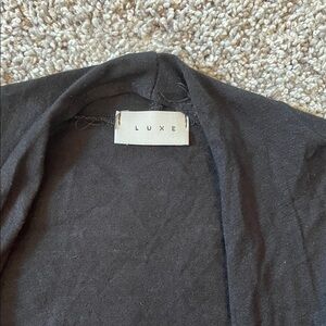 Chic black open front cardigan. Ideal for versatile styling. Size small Sleeveless