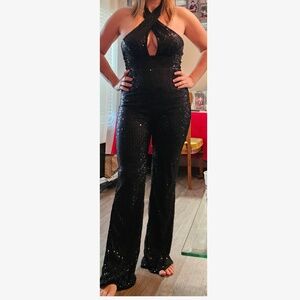 Luxe Black Sequin Wide leg Fitted Jumpsuit