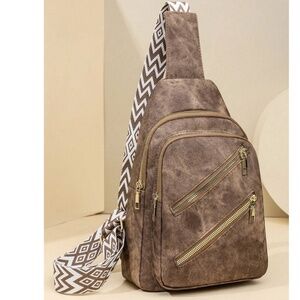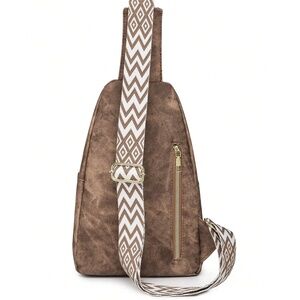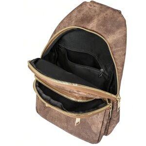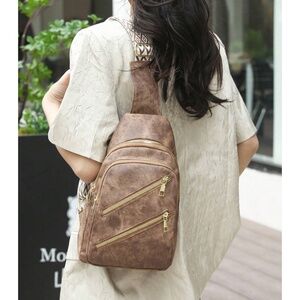 Luxe Brown Vegan Leather Zip up Crossbody Shoulder Bag