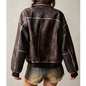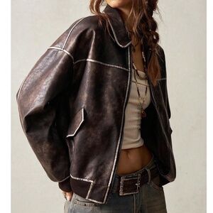 Luxe Brown Vegan Leather Zip up Oversized jacket Coat