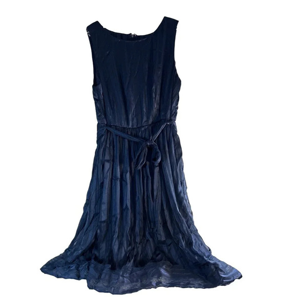Luxe By Carmen Marc Valvo Womens Dress Navy Blue Flowy Lined Zip Back Sash Tie S