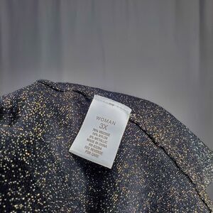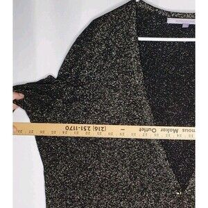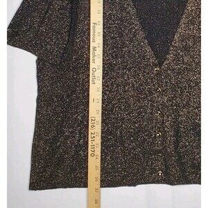 Luxe Carmen Marc Valvo Cardigan 3X Womens Black Gold Speckled Short Sleeve Plunge V-Neck Button