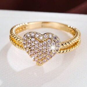 Luxe Cubic Zirconia Heart Rope Band Ring