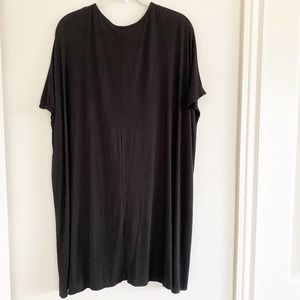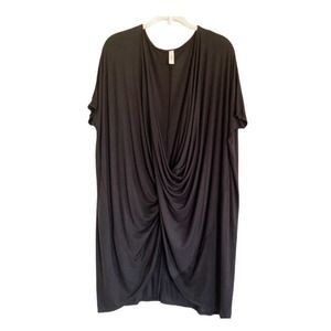 Luxe Draped Relaxed Oversized Short Sleeve Tunic. Black. Size Small. Gathers draped into a v-neckline in the front and longer length on sides and back. Pre-owned. Excellent condition. 96% Rayon, 4% Spandex. Hand wash.