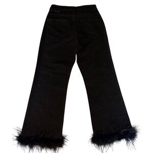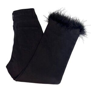 Vibe/Trend: Chic and daring, these black jeans feature a feather-trimmed hem that adds a touch of glamour to your everyday wardrobe.