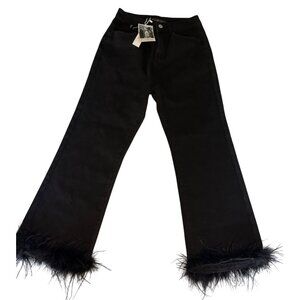 Luxe Dress Black Jeans with Feather Hem, Size S NEW WITH TAGS