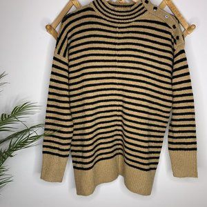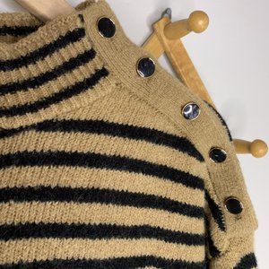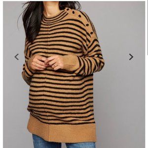 Luxe Essentials Denim Tan and Black Button Shoulder Maternity Sweater NWT Small