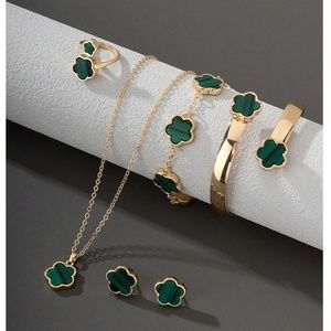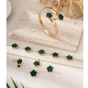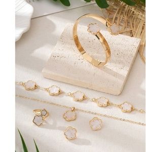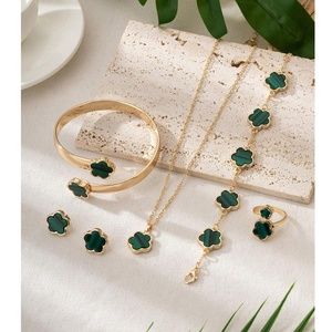 Luxe Gold Tone Flower Necklace Ring Jewelry Set