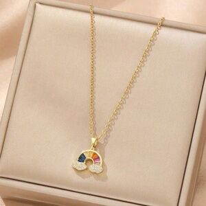Luxe Gold Tone Stainless Steel Rainbow Necklace