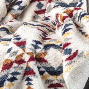 5. Features: 100% polyester, 460GSM, Blanket Stitch edge, Reverse side solid faux sherpa in Off-White, 50 in. x 60 in.