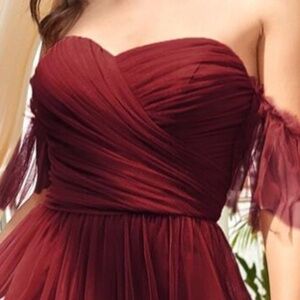 Luxe Mesh Off Shoulder Bridal Prom Formal Maxi Dress