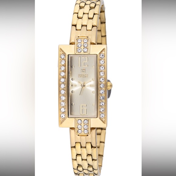 Gorgeous women’s Montres Prestige by Invicta quartz watch (model MPW-0228) – stunning gold-tone finish with sparkling crystal/rhinestone accents all over the rectangular bezel and bracelet! ✨✨ Champagne dial, elegant design that’s pure glamour. Brand new with tags, original protective pillow, and official box. Perfect statement piece for any outfit! ⌚👑