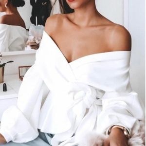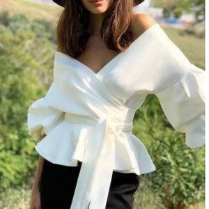 Luxe Off Shoulder Balloon Sleeve peplum Blouse