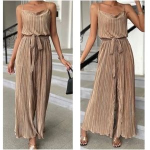 Luxe Olive Green Pleated Belted Wide Leg Cami Jumpsuit