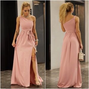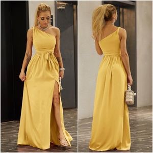 Luxe One Shoulder Belted Split Thigh Party Evening Wedding Dress