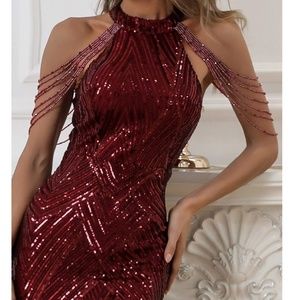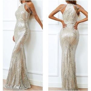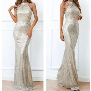 Luxe Sequin Halter Evening Party Wedding Bodycon Gown Dress