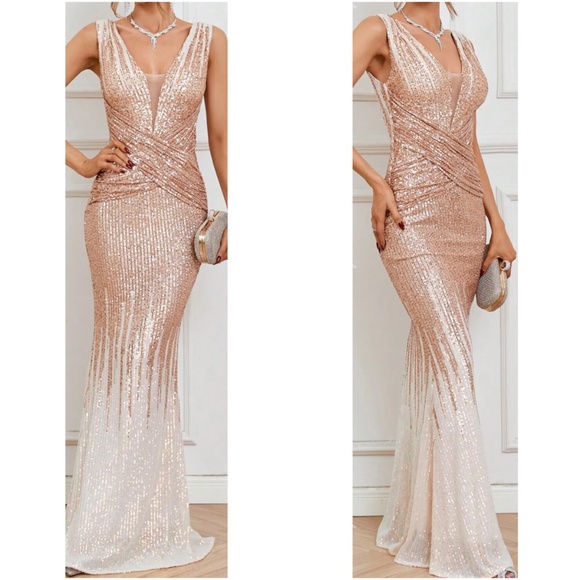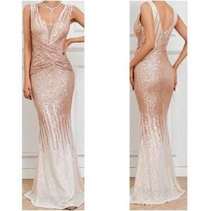 Luxe Sequin High Waisted Mermaid Hem Fitted Prom Formal Wedding Dress
