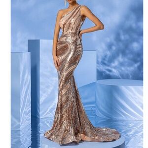 Luxe Sequin One Shoulder Party Evening Wedding Prom Dress