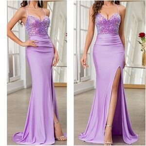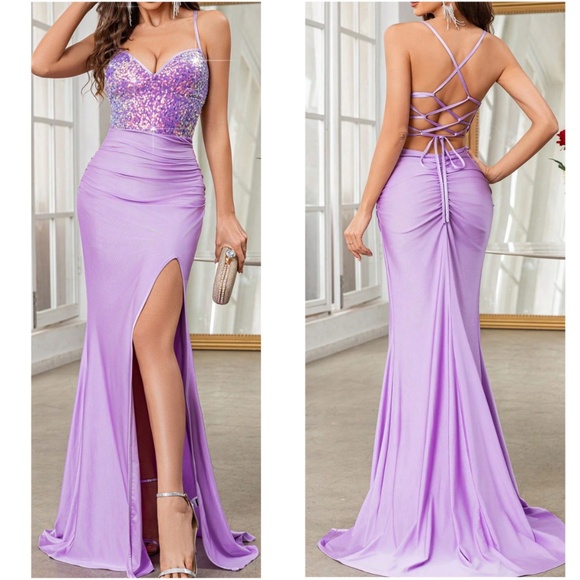 Luxe Sequin Satin Criss Cross Lace up Prom Formal Party Dress