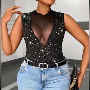 Luxe Sheer Mesh Lace Sleeveless Top Blouse Shirt