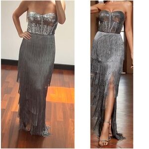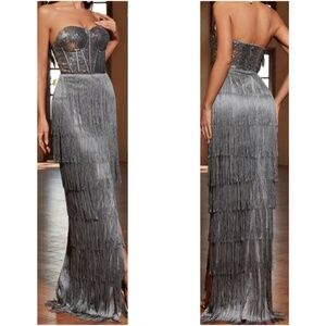 Luxe Strapless Sequin Fringe Party Evening Wedding Dress