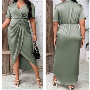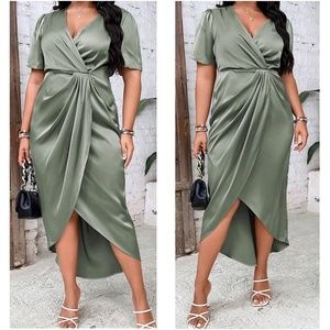 Luxe Surplice Short Sleeve Evening Party Dress