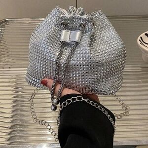 Luxe Textured Chain Handle Bucket Evening Party Formal Shoulder Crossbody