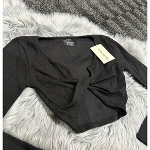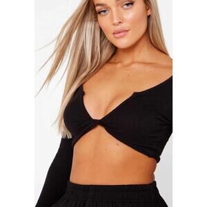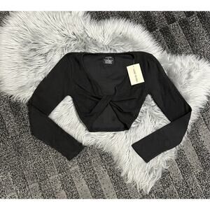 Luxe To Kill Black Long Sleeve Knot Detail Crop Size Large (MSRP $60)