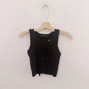 Luxe To Kill Ribbed Asymmetrical Top Black Buttons Goth Punk Tank Sleeveless