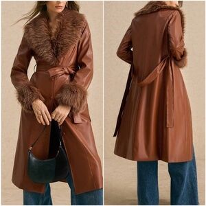 Luxe Vegan Fur Leather Pockets Button Down Jacket Coat