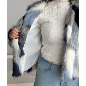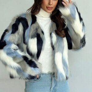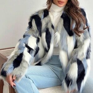 Luxe Vegan Fur Multicolor Oversized Open Front Jacket Coat