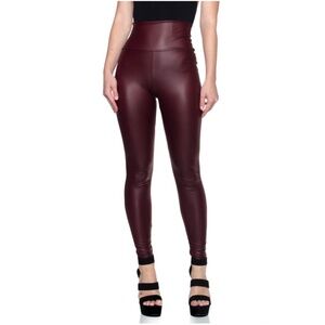 Luxe Vegan Leather Burgundy High Waist Tummy Control Leggings