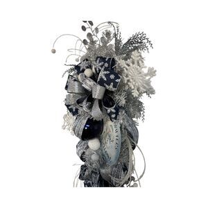 Luxe Winter Midnight Navy Blue Gray Silver Winter Teardrop Swag Wreath