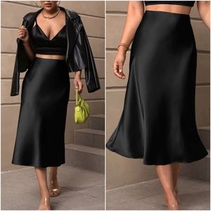 Luxe Zipper Satin Midi Slip Skirt