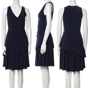 Luxe by Carmen Marc Volvo Drape Front Sleeveless Tiered Navy Midi Dress Sz 22