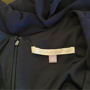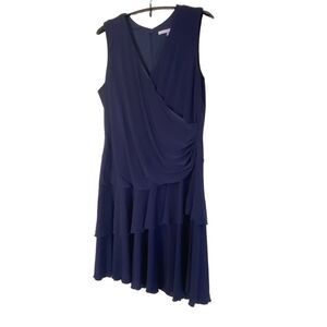 Luxe by Carmen Marc Volvo Drape Front Sleeveless Tiered Navy Midi Dress Sz 22 in EUC with no visible flaws