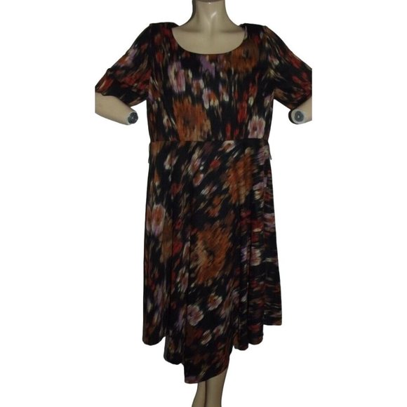 Luxe by Carmen Woman 16W Orange Black Knit Asymmetrical Hem Midi Sheath Dress