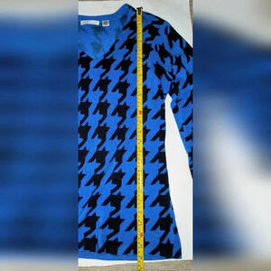 Luxe by Designers Originals Blue/Black Houndstooth V Neck Lightweight Sweater, M