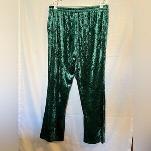 Luxurious green velvet pants with an elastic waist for a comfy fit. Perfect for a stylish look.