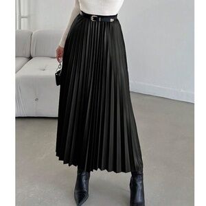 Luxe stretchy Waist Pleated Midi Skirt