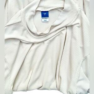 NWOT Old Navy Luxe Mock-Neck Rib-Knit Swing Top in cream. This versatile luxurious feel top is in like new/perfect condition and has never been worn!