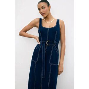 Luxely Denim Contrast Stitch Midi Dress Size 2