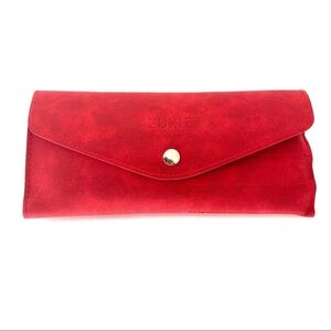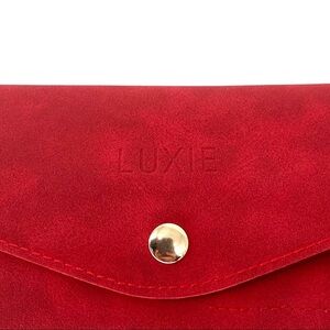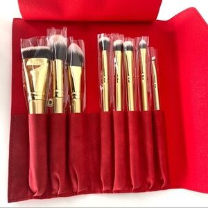Women's Glitter and Gold Brush Set w/ Pouch from Luxie. A complete range of brushes for foundation, contouring, highlighting, and blending, this set has all you need to create perfect holiday looks. This fabulous set comes tucked inside a durable, easy to clean, festive red brush pouch.