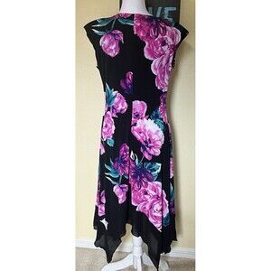 Luxology Black Fuschia Sleeveless Floral Shark Bite Women's Dress Size 10 NWT